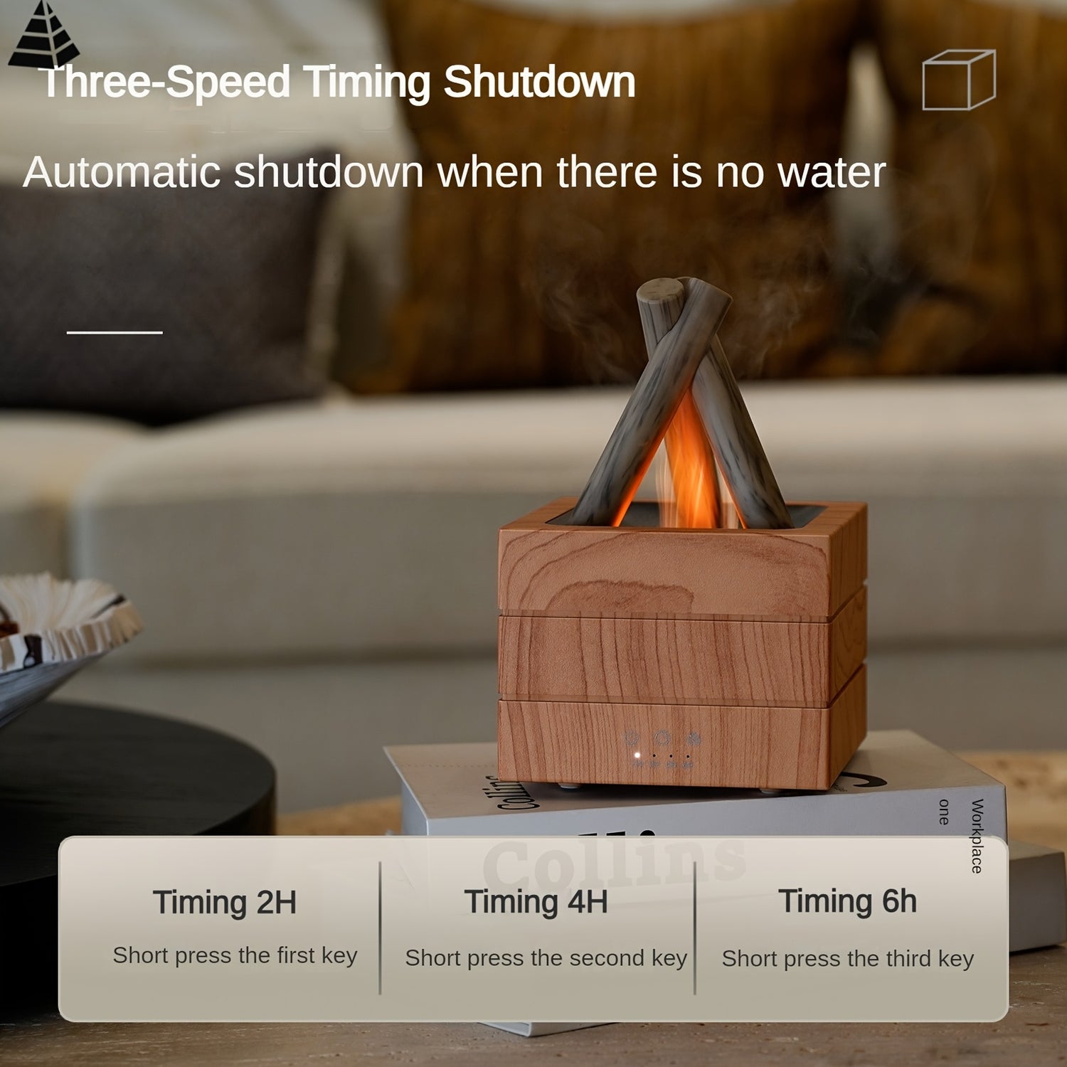 Enjoy the warmth of a realistic campfire right at home with a shooting flame-mist design.